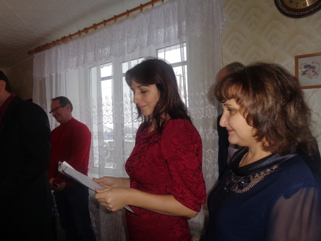 Начальница загса Журихина О.В, Секретарь отделения партии "Единая Россия" по Екатериновскому району Сизов Н.М., начальник соц.защиты Поляков, Пузырев Е.И., Благочинный отец Иоан, Шилова Т.К. Гостей в доме Мартыновых уже встречали дети, участники и работники Сластухинского ДК и библиотеки, а также специалист администрации Тюрина О.Н. Гости вручили подарки, высказали очень много теплых и приятных слов в адрес наших юбеляров. Вокальная группа "Рябинушка" исполнила веселые, задорные песни.