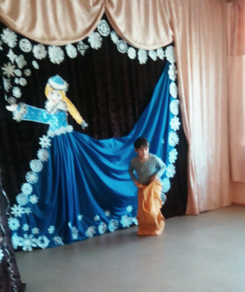Дети разделились на две равные команды, придумали им названия «Снежки» и «Оливьешки», выбрали капитанов. Ребята активно участвовали в конкурсах и эстафетах: «Бега в мешках», «Загадки», «Зимний узор», «Зимние забавы», «Коробка с сюрпризом», «Портрет Снегурочки», «Зимний кроссворд», «Собери Деда мороза» и т.д.