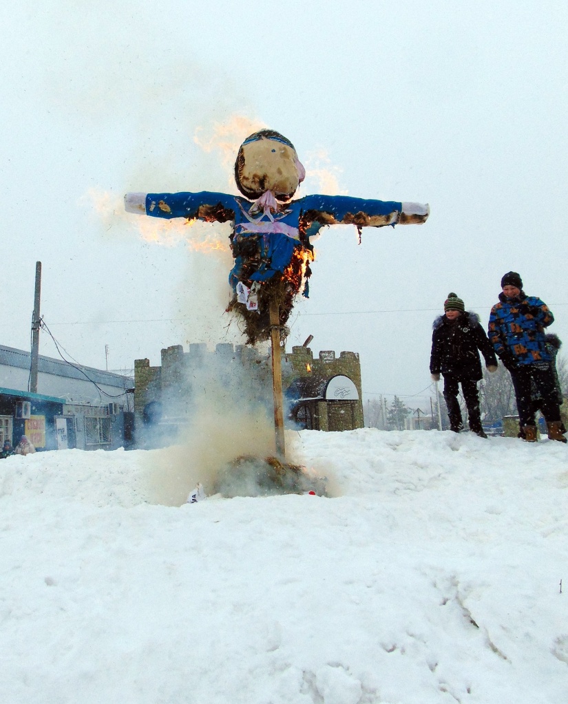 В программе были: и театрализованное представление «Как февраль Маслену выручал», подготовленное Назаровой Екатериной вместе со своим коллективом - студией «Пиноккио», и спортивные состязания ДЮСШ, и игровая и концертная программа для всех желающих от работников РДК и ДДТ. Веселое, яркое мероприятие завершилось прощальным сожжением чучела Масленицы, с массовым ликованием «Гори, гори, ясно….».