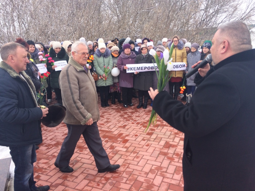 Мемориал с цветами, свечами и детскими игрушками организовали у памятника павшим в ВОВ. Чтобы выразить скорбь и соболезнования семьям погибших при пожаре, сюда с 13.00 часов начали приходить люди. Трудно остаться равнодушными к такому горю, говорят жители посёлка. Они надеются, что волна искреннего сочувствия из Индустриального дойдет до Кемерова. Никаких официальных речей. Выступающие призывали всех сплотиться вокруг общей беды и сделать так, чтобы подобные трагедии больше не повторялись.