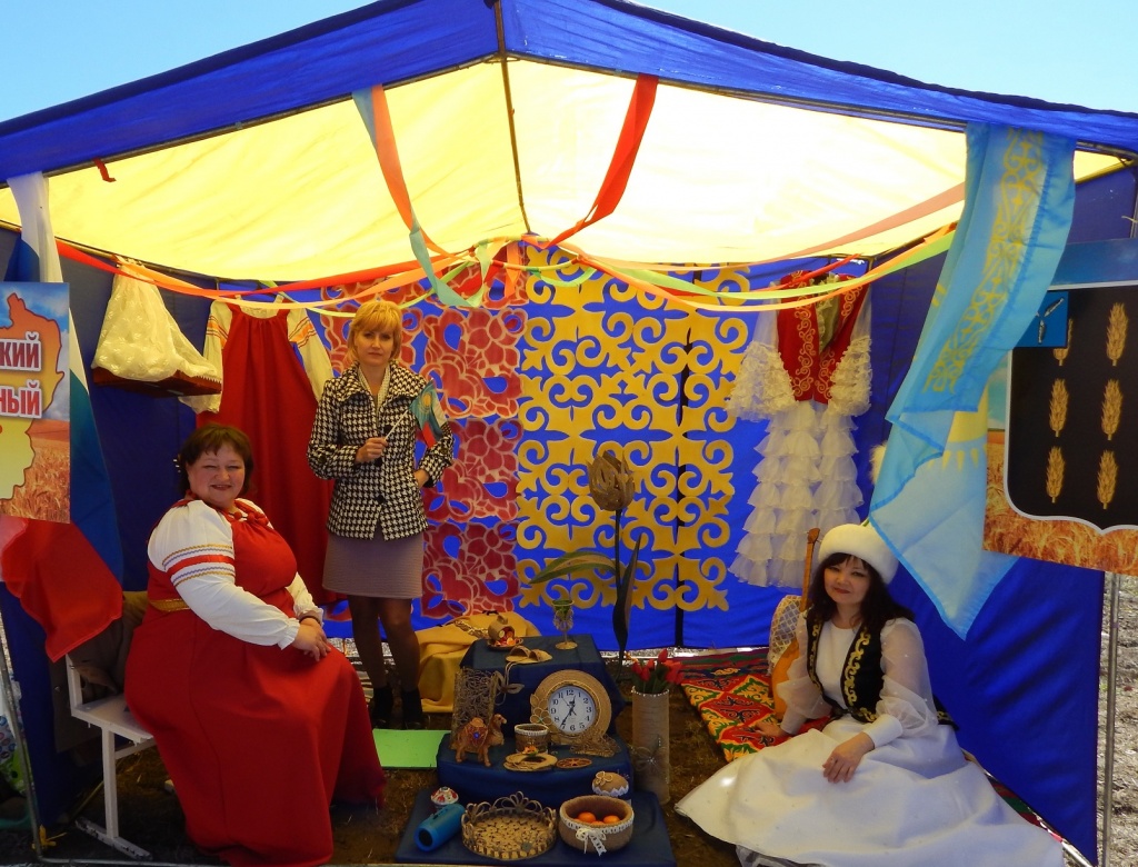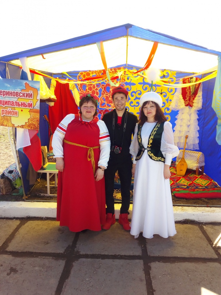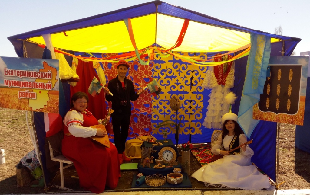 Идея национального единства и дружбы Россия – Казахстан – воплотилась в оформлении презентационной выставочной палатке Екатериновского МР. Заготовленные Флажки «Россия–Казахстан-Екатериновка» - пользовались огромным спросом и стали раздаточным брендом праздника среди массового гуляния, угощения и празднования.