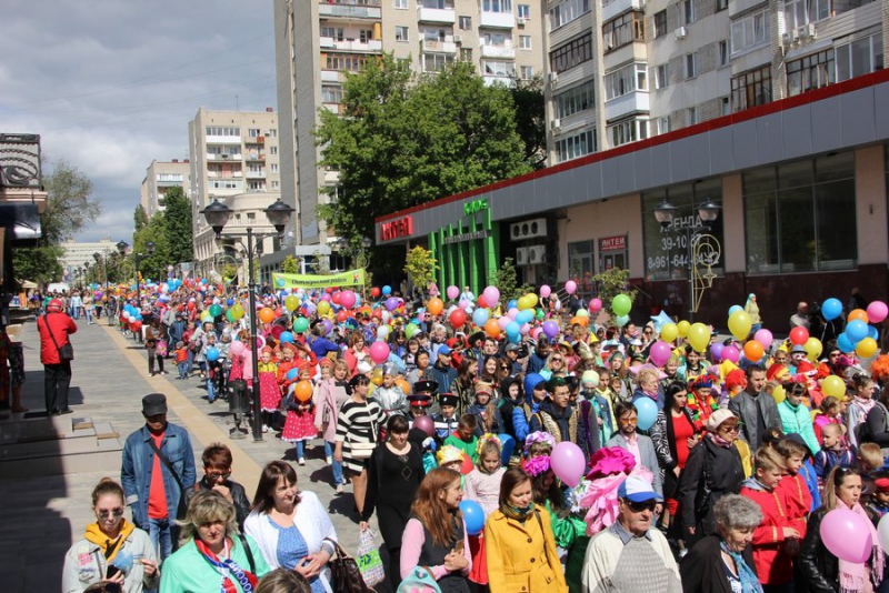 Наши «Бусинки», вместе с юными танцорами, певцами и спортсменами, а так же с учащимися школ Саратова и области, встретились на улице Волжской у ретро трамвая, откуда стартовал парад. Впереди шел оркестр, исполнявший известные детские песни. Также в начале шествия были замечены председатель Общественной палаты Саратовской области Александр Ландо и депутат Саратовской областной думы Юлия Литневская. Следом шли колонны районов. Несмотря на то, что погода была не совсем летней, настроение было солнечным и все дети были одеты в карнавальные костюмы. Каждый район по-разному подошел к своей презентации. В колонне Волжского района шли ростовые куклы, а дети были одеты в костюмы героев сказок, а колонна Октябрьского района выбрала тематику предстоящего Чемпионата мира по футболу: многие были в спортивной футбольной форме, с мячами и воздушными шарами в цветах российского триколора. Наши костюмы не уступали в разнообразии и яркости. Изысканные стиляги, герои республики «ШКИД», маленькие патриоты в костюмах цвета Российского флага представляли Екатериновский район.
