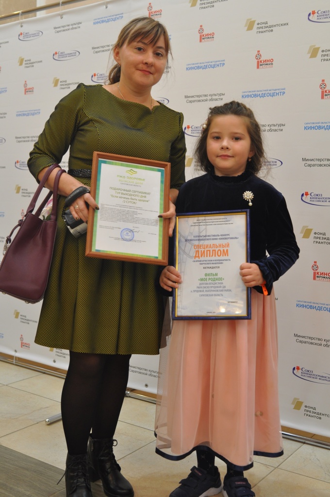 В числе участников были дети и нашего района: Долгова Владислава уч-ца 1 кл. МОУ СОШ п. Прудовой; Майорова Кристина - ученица МКОУ СОШ с. Кипцы; Пшеничная Полина-ученица 10 класса МКОУ СОШ с.Кипцы; Гасымов Рамиль – ученик 11 класса МОУ СОШ с.Крутояр. Руководитель группы Долгова Екатерина Викторовна-учитель нач. классов МОУ СОШ п.Прудовой. Программа фестиваля была насыщенной и разнообразной. В течении 5 дней проводились мастер-классы с киноматографистамии и режиссером-мультипликатором, председателем фестиваля Гарри Бардиным. Работали творческие лаборатории по созданию фильмов от идеи до воплощения. Неоднократно проводились пресс-конференции с организаторами фестиваля. Творческие встречи с известными актерами такими как Максим Матвеев, Елена Коренева, Андрей Ташков. Просмотр премьерных фильмов «РОК» - режиссер И.Шахназаров, «СО ДНА ВЕРШИНЫ» - режиссер Тамара Цоцория и многое другое. Всего на проект было прислано около 600 работ, допущено к рассмотрению 194. В течении нескольких дней жюри пришлось оценивать и определять дипломантов. 5 октября состоялось торжественное закрытие фестиваля и награждение победителей. В число призеров вошла и наша землячка – Владислава Долгова. Ее видео-фильм «МОЕ РОДНОЕ» был отмечен специальным дипломом за яркий артистизм и неординарность творческого мышления. Дети вернулись домой с массой впечатлений и с желанием создавать новые фильмы.