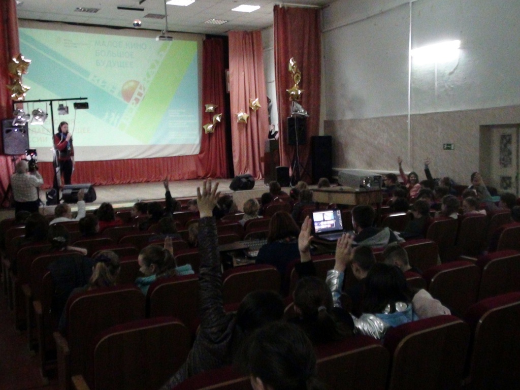 Команда проекта «Малое кино – большое будущее» приветствовала присутствующих. Демонстрировался видеоряд о прошедшем V фестивале детского кино. Особенно приятно отметить, что на встрече были авторы киноработ , участвовавшие в фестивале «Киновертикаль»: Пшеничная Полина с.Кипцы, Майорова Кристина п. Прудовой и Суетина Варя р.п. Екатериновка. Ребята поделились своими впечатлениями об особенностях и условиях их участия в этом проекте. Зрители бурными аплодисментами приветствовали юных кинорежиссёров.