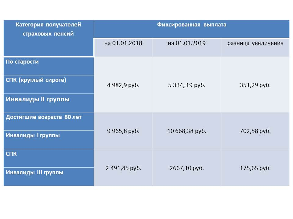 Таким образом, для 80-летних пенсионеров, а также инвалидов 1-ой группы размер фиксированной выплаты составляет 10 668,38 руб.