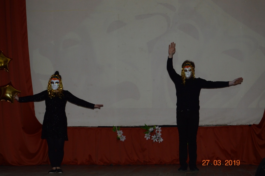 И всё это было в дождливый мартовский вечер: солисты студии танца «Фортуна» О.О. Минаева и С.А.Верёвкин наглядно продемонстрировали работу странствующих итальянских актёров «Комедии Дель Арте» и современное использование в работе постановщиков трюков различных способов сценического бесконтактного боя; весёлую скоморошину представили участники фольклорной группы «Вересинка» (рук. А.Кочнова); блистательное исполнение серьёзного произведения о судьбе не рождённого ребёнка показала 9 -летняя Татьяна Степанова (театральная студия «Оливье», рук. Е.Лавров); эмоциональное исполнение, прекрасное владение художественным словом - это отличительная черта М.Орловой, выступление которой прошло буквально под занавес!. И, конечно же, в завершении прозвучала песня «Артист» (из репертуара гр. «Земляне») – этот своеобразный гимн для всех служителей Мельпомены-музы театра.