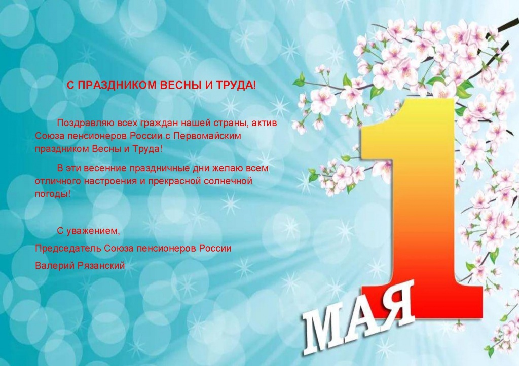 Поздравление с праздником Весны и Труда от Председателя Союза пенсионеров России Валерия Рязанского