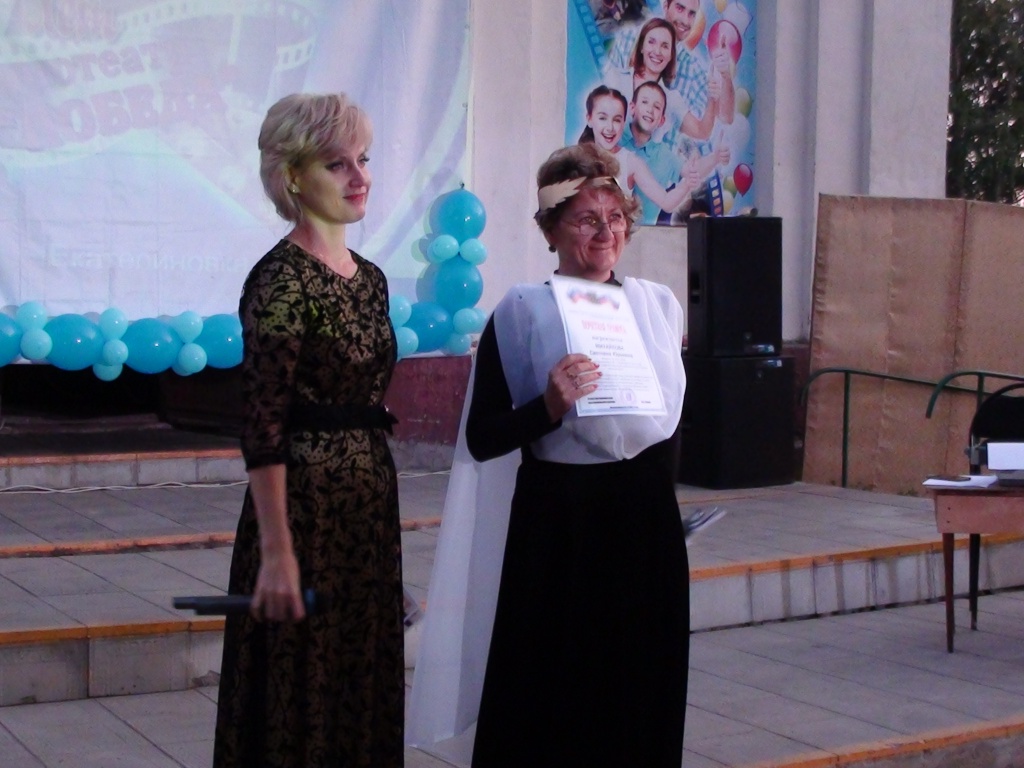 И потому «Волшебный луч голубого экрана» собрал на площадке РДК всех не равнодушных, всех влюблённых в кино Екатериновцев. Большой путь пройден, но ещё интереснее, ещё насыщеннее та дорога, по которой продолжает двигаться вперёд российское кино! И тому у нас есть очень хорошие примеры: дети, которые снимали свои первые видеоролики; Школа искусств, педагоги и учащиеся которой принимают всегда активное участие во всех мероприятиях отдела кино; работники и участники художественной самодеятельности РДК. Каждый начинающий кинорежиссёр, каждый гость вечера получили свою заслуженную награду: юбилейные значки, дипломы и памятные подарки. Никого не забыла отметить Ведущая программы, методист киносети С.Михайлова. И, разумеется, в гости не принято приходить с пустыми руками. Начальник Управления культуры и кино Екатериновского района С.Н.Иванушкина вручила юбилейную награду. Весь вечер звучали песни из любимых кинофильмов или их ремейки в исполнении С.Иванушкиной, Г.Зуйковой, У.Гасымовой, С.Верёвкина, Ю.Шелеповой, М.Аринушкина, И.Михайлова, Натальи и Александра Ионцевых. На экране сменяли друг друга видео-ролики о киножизни района, умело составленные киномехаником Е.Назаровой. Открыла концерт младшая группа студии танца «Фортуна» (рук. Э.Б. Волкова) с танцем «Великий Чарли», что ещё раз напомнило всем зрителям о гении «Великого немого» - Чарли Чаплине. Директор киносети (Т.Чернова) от души поблагодарила друзей-киноманов, пришедших и приехавших на праздник.