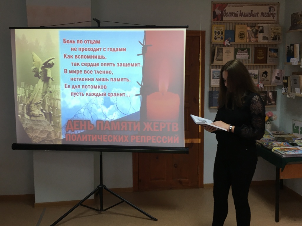 Ко Дню памяти жертв политических репрессий в Кипецком СДК был проведён урок памяти «Чёрные страницы 30-х». Цель мероприятия — вызвать у подростков и молодёжи интерес и эмоциональный отклик на события истории нашей страны времён тоталитаризма и сталинских репрессий, сформировать представление о недопустимости государственного беззакония в отношении граждан. Ведущие с помощью электронной презентации постарались донести до аудитории историю тех страшных лет. На мероприятии были прочитаны стихи, посвящённые репрессиям и гонениям 30 годов.