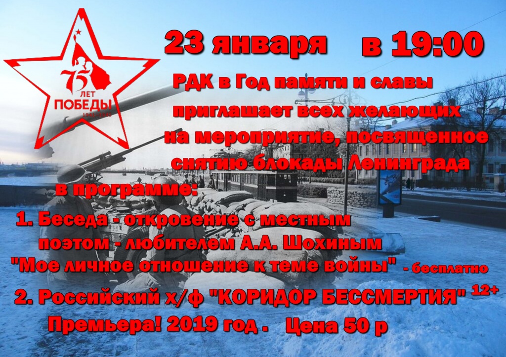 В программе:1. Беседа - откровение с местным поэтом - любителем А.А. Шохиным "Мое личное отношение к теме войны"