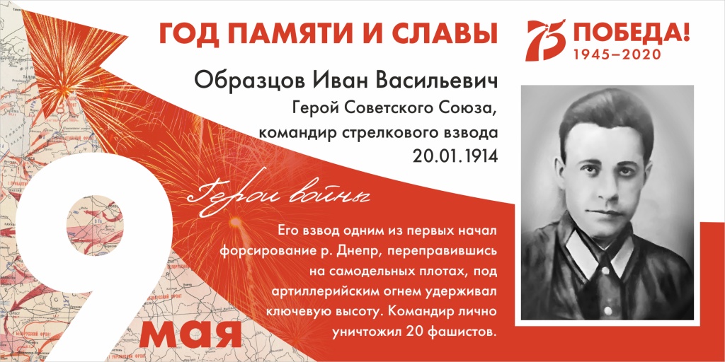 Родился 20 января 1914 года в селе БАКУРЫ. С июля 1942 года сражался на Воронежском фронте. Участвовал в Воронежско-Касторненской наступательной операции, Курской битве и освобождении Правобережной Украины. Взвод Образцова одним из первых начал форсирование Днепра, переправившись на самодельных плотах под мощным огнём немцев. После тяжёлых боёв ему удалось завладеть высотой 185,7, которая господствовала над местностью. Немцы вели упорный артиллерийский огонь по высоте и множество раз атаковали её. Образцову с его бойцами приходилось удерживать высоту. Образцов убил 20 нацистов за один день. В последующие три дня боя взвод Образцова уничтожил ещё 100 нацистов, после чего, 25 сентября, Иван Образцов был убит.