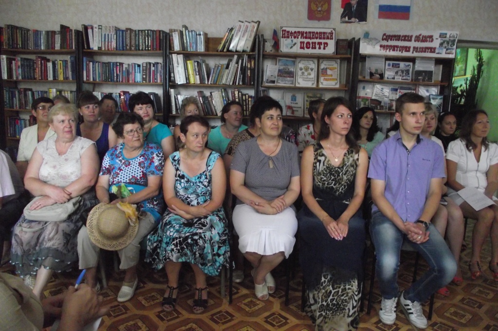 На встрече присутствовали глава администрации Екатериновского района С.Б. Зязин, секретарь местного отделения Партии «ЕДИНАЯ РОССИЯ» А.А. Стрельцова, представители районной администрации, педагоги, работники культуры, сотрудники пенсионного фонда, любители словесности.