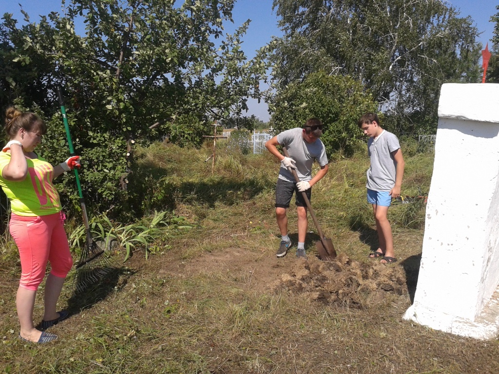 Общими усилиями была ликвидирована сорная растительность, памятник был покрашен, разбиты клумбы.
