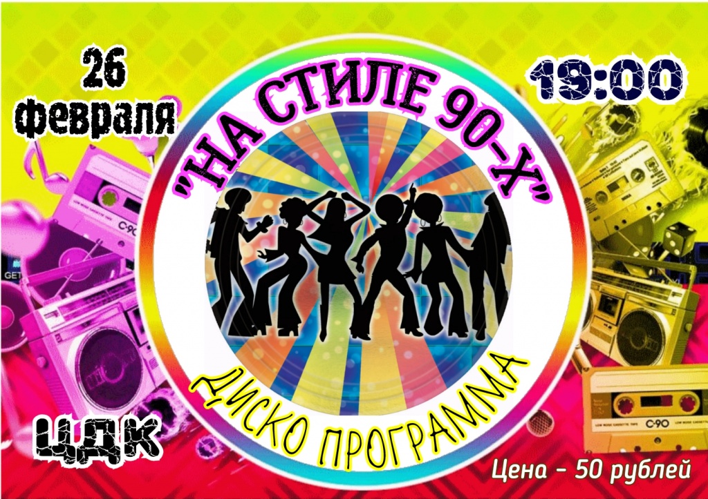 26 февраля в 19:00 в ЦДК состоится диско программа "На стиле 90-х"