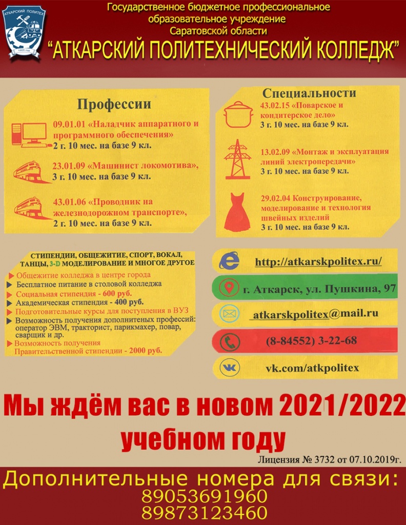 Аткарский политехнический колледж приглашает выпускников школ на учебу
