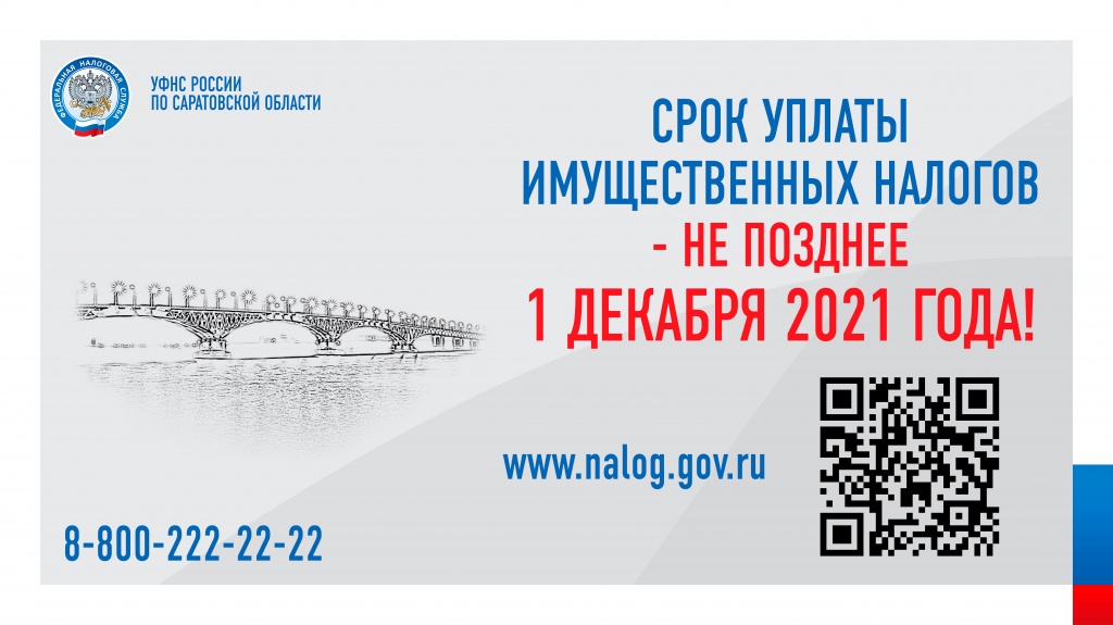 Межрайонная ИФНС России №12 по Саратовской области напоминает, что имущественные налоги за 2020 год (налог на имущество, транспортный налог, земельный налог) уплачиваются не позднее 1 декабря 2021 года.Имущественные налоги уплачиваются на основании сводного налогового уведомления. В связи с этим налоговые органы не позднее 30 дней до наступления срока уплаты по вышеперечисленным налогам направляют налогоплательщикам - физическим лицам налоговые уведомление для уплаты налогов. Если до 1 ноября 2021 года уведомление не поступило, то налогоплательщику необходимо обратиться в налоговый орган для его получения.
