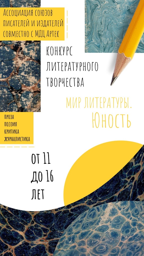 Ассоциация союзов писателей и издателей проводит конкурсы, реализуемые при поддержке Президентского фонда культурных инициатив:-«Мир литературы. Юность» для детей от 11 до 16 лет;