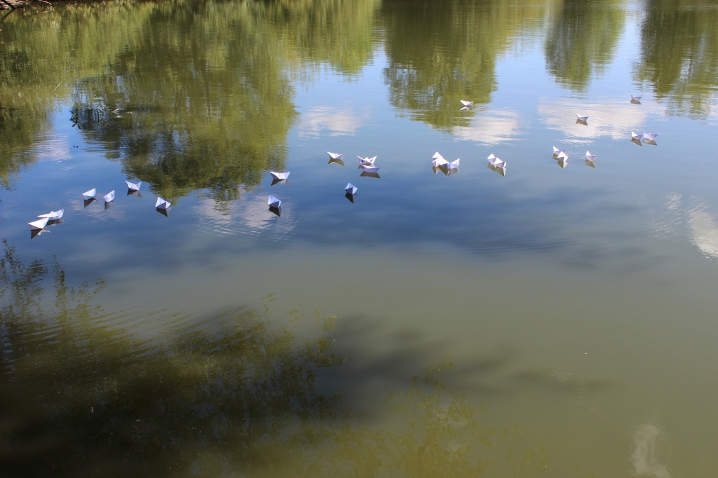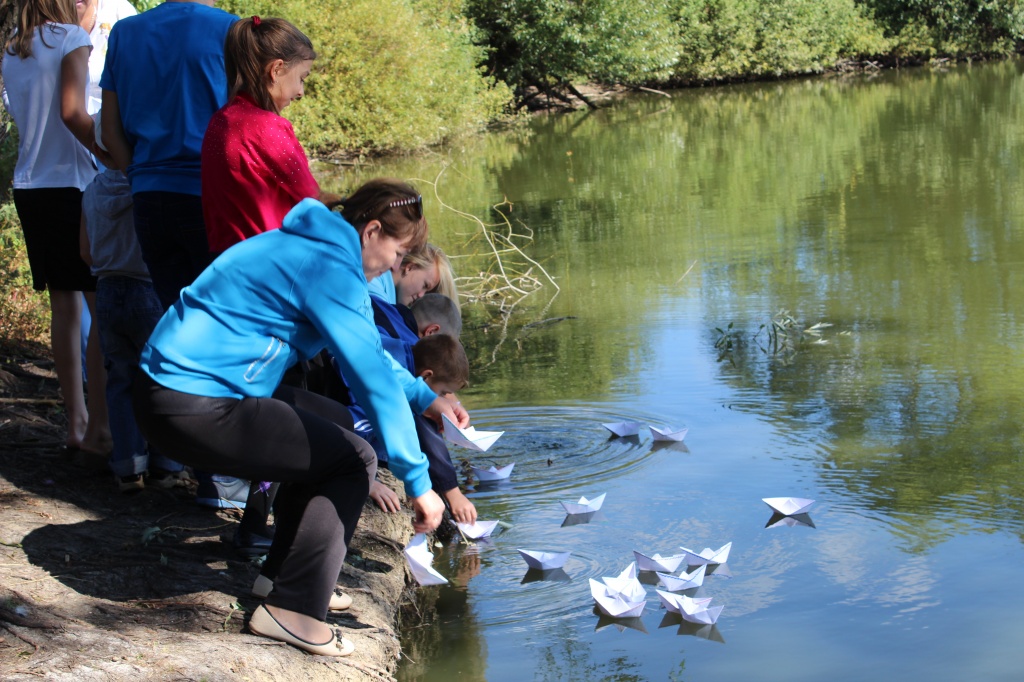 В память о героических страницах нашей истории школьники, жители села и активисты молодежного движения спустили бумажные кораблики в акваторию местной реки