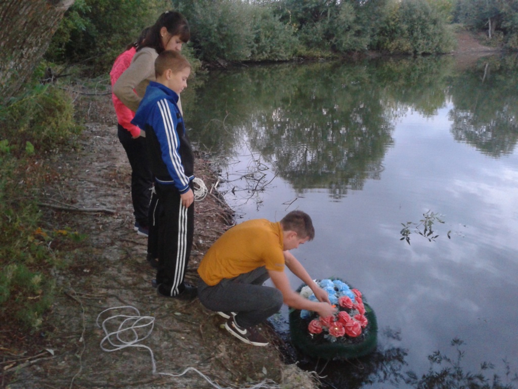 В вечер памяти жертв террористического акта в Беслане на воду был спущен венок с зажженными свечами...