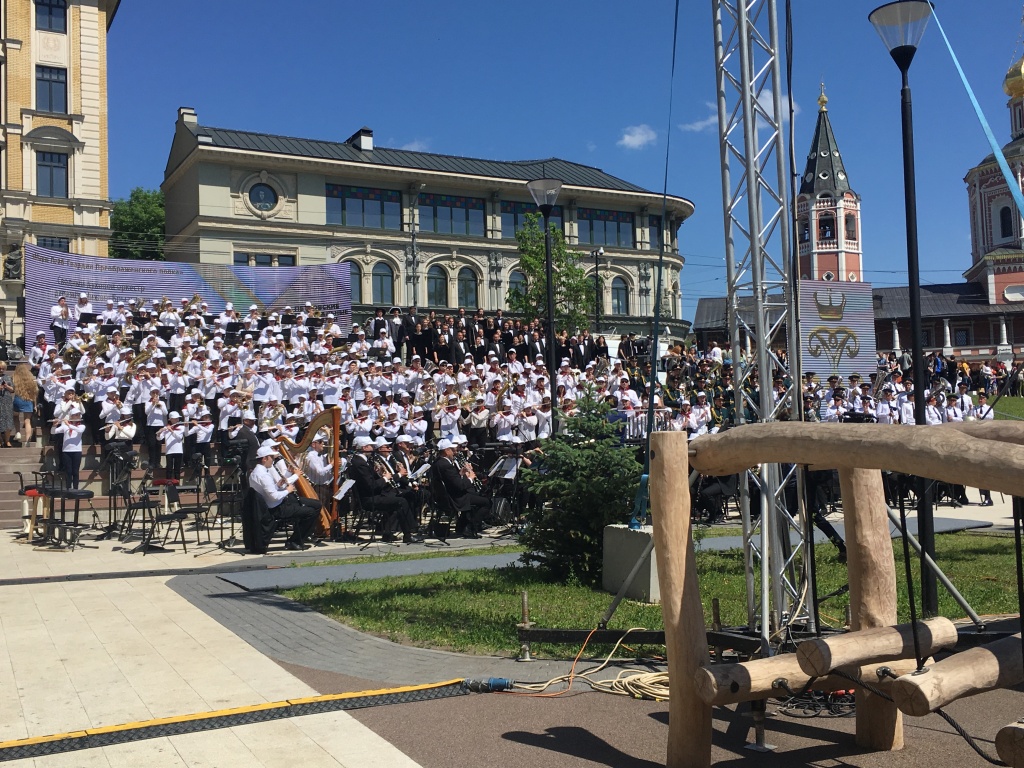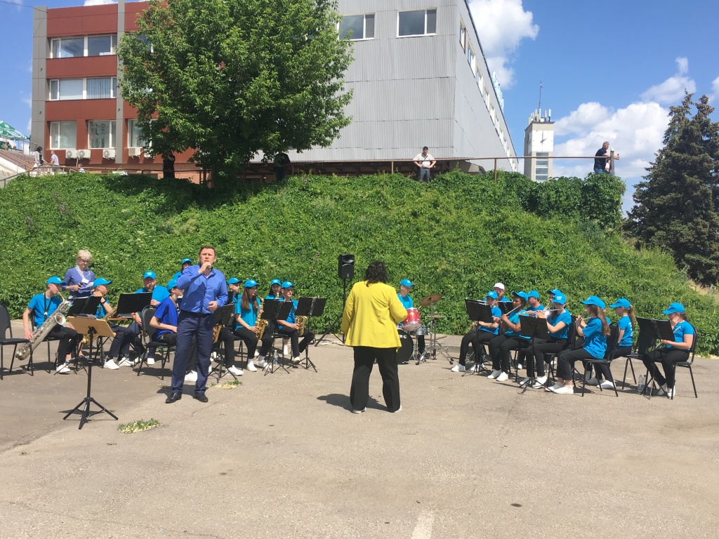 Затем на концертной площадке площади Петра Первого Набережной космонавтов оркестр выступил с часовой концертной программой «Петр I – имя России». Ведущие: Максим Аринушкин и Светлана Иванушкина. В исполнении духового оркестра «АККОРД» прозвучали старинные марши, среди которых - музыка «Преображенского марша», созданная при жизни Петра I, полковой скорый марш Королевской артиллерии, позже гренадерской гвардии старинный марш «Гренадер», «Марш Семеновского полка», «Егерский», «Тоска по Родине» и другие. В исполнении солиста, директора ГУ ДО «ДШИ» р.п. Екатериновка, Максима Аринушкина под аккомпанемент оркестра прозвучали хорошо нам знакомые и любимые песни: «Вы шумите березы», «Малиновый звон», «Майский вальс», «Утомлённое солнце».