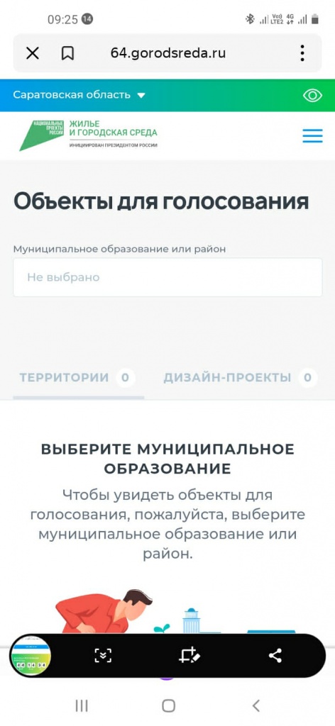 Для голосования пройдите по ссылке: za.gorodsreda.ru на свою страницу сайта «Госуслуги», выберете Саратовскую область, затем Екатериновский район, далее выберите понравившийся Вам дизайн-проект объекта благоустройства и проголосуйте за него!