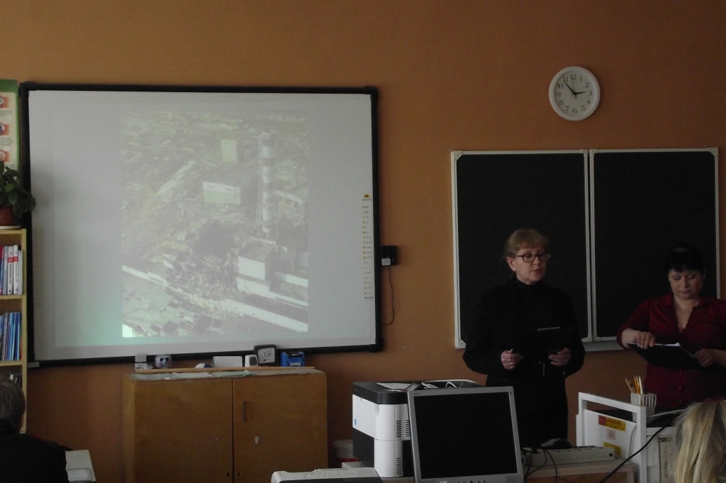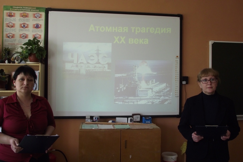 Ребята узнали подробности о самой крупнейшей аварии за всю историю ядерной энергетики, когда в результате взрыва на четвертом энергоблоке Чернобыльской АЭС в атмосферу было выброшено 50 тонн испарившегося топлива. Зараженными оказались воздух, почва, вода, растительность, животные и люди, получившие очень сильную дозу радиации, - для многих оказавшуюся смертельной. Воссоздавая произошедшие в тот роковой день события, ведущие говорили о последствиях аварии, как по предполагаемому количеству погибших и пострадавших людей, так и по экономическому и экологическому ущербу. Ведь радиоактивному загрязнению подверглось более 200 000 км², и привело в негодность одну из самых плодородных земель в Европе. Рассказ сопровождался электронной презентацией и видеокадрами. Конечно же, снимки не могли дать полного представления о происходящем в Чернобыле, но взвесить, оценить, понять, предупредить – этого было достаточно. С особым вниманием ребята слушали о беспримерном мужестве первых часов страшной апрельской ночи, когда люди, не жалея себя, шли в огонь и были насквозь прошиты смертоносной радиацией, и о напряженных днях работы по ликвидации последствий аварии, в которой приняли участие и наши земляки, по имеющимся данным - 22 человека. Ведущими были озвучены фамилии всех участников, ведь каждый из них заслуживает особого уважения. В заключение мероприятия были выражены слова надежды на то, что молодое поколение будет бережно относиться к нашей хрупкой планете, и в будущем сделают все, чтобы никогда не допустить новой атомной катастрофы на нашей Земле!