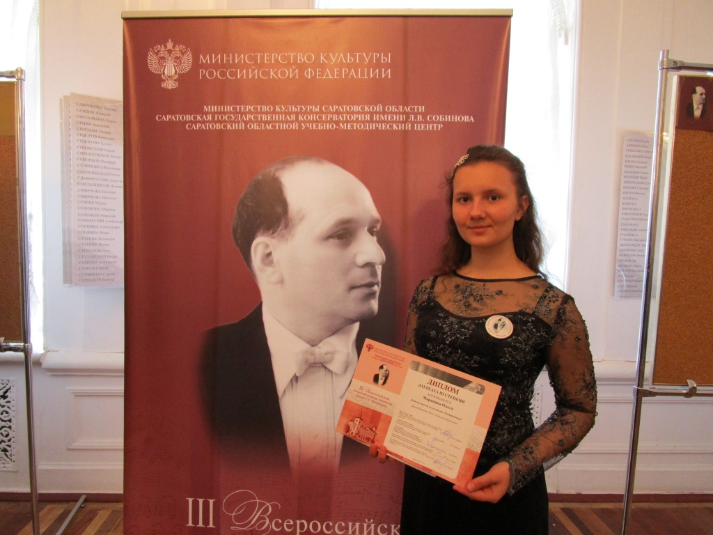 Прослушивания проходили в четырех возрастных группах. Учащаяся нашей Екатериновской Детской школы искусств Маринина Ольга выступала во II возрастной группе, в которой собрались сильные конкурсанты из Саратова, Волгограда, Астрахани, Невинномысска и Орска. Ольга блестяще справилась с поставленными перед ней задачами, уверенно исполнила свою программу и была награждена бурными аплодисментами зрителей. На церемонии закрытия конкурса, 24 мая, на сцене Большого зала Саратовской государственной консерватории имени Л.В.Собинова, министр культуры Саратовской области Т.А.Гаранина и председатель жюри конкурса, народный артист России, профессор А.М.Тараканов, награждали победителей конкурса, в том числе и Маринину Ольгу, которая была удостоена III премии и награждена Дипломом Лауреата III степени III Всероссийского открытого конкурса пианистов имени С.С.Бендицкого.