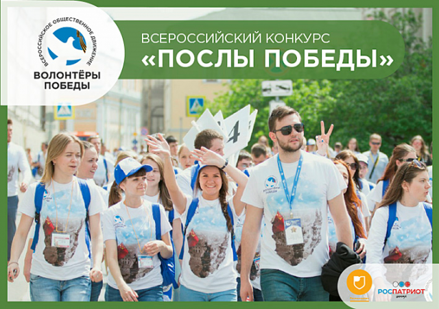 Всероссийский конкурс "Послы Победы" С 21 февраля по 20 марта 2017 года Всероссийское общественное движение "Волонтеры Победы" при поддержке Федерального агентства по делам молодежи и ФГБУ "Роспатриотцентр" проводят Всероссийский конкурс "Послы Победы" на зачисление в функциональные группы волонтеров, задействованных в проведении парада Победы в Москве и в Севастополе. К участию в Конкурсе приглашаются социально активные граждане России в возрасте от 18 до 30 лет - руководители и представители добровольческих групп, заполнившие анкету на сайте волонтерыпобеды.рф. В начале апреля 2017 года от каждого региона будут определены до трех победителей. Дополнительная информация: Галимова Надежда Рашитовна, тел.:8 (499) 967-86-70, Бычкова Евгения Петровна, тел.:8(499) 649-47-77. |